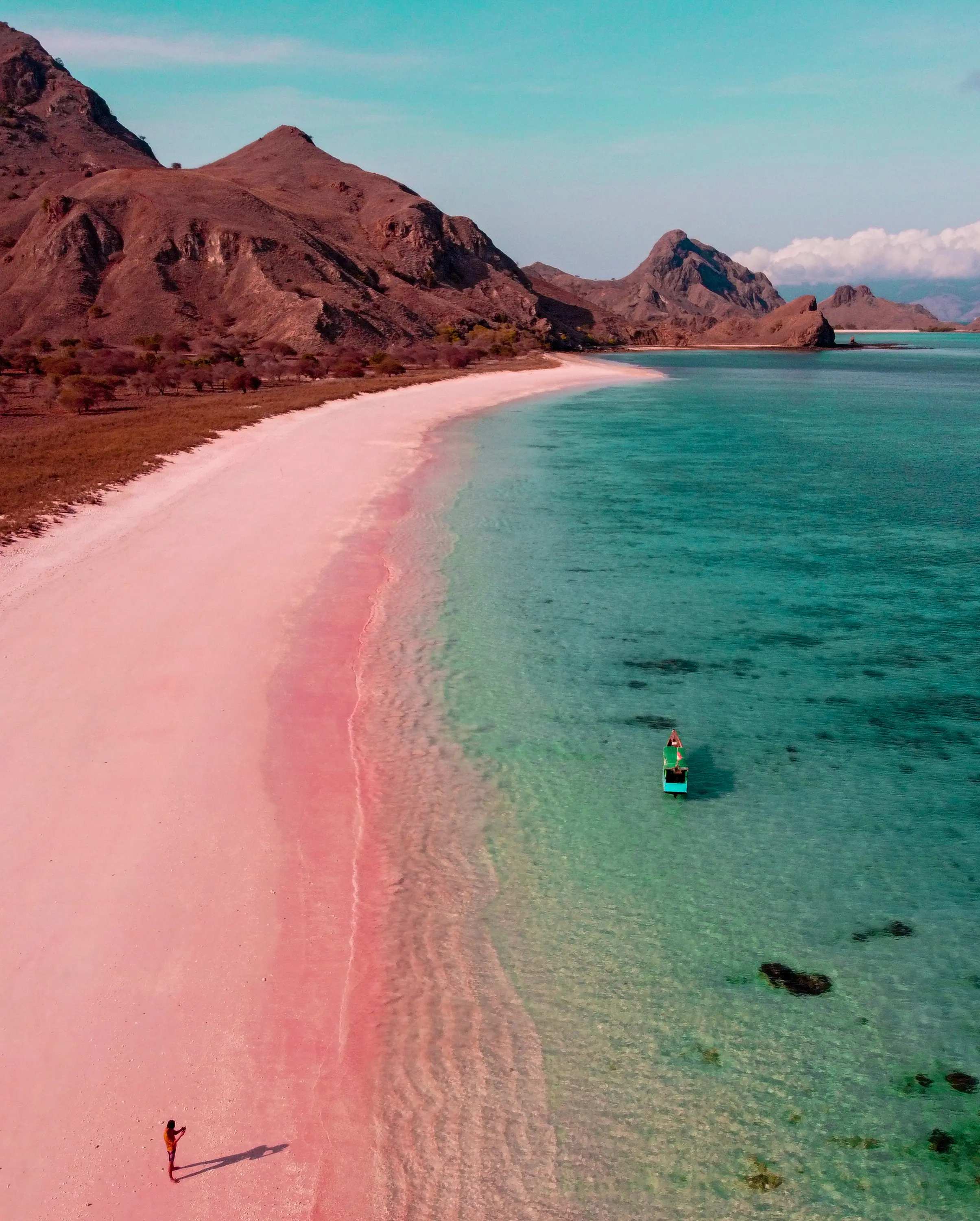The Pink Beach on the Indonesian Island of Komodo is one of only seven in the world. The sand appears pink because it is a mixture of white sand and red sand, formed from pieces of Foraminifera - a single-celled Organism. The Komodo island is particularly notable as the habitat of the Komodo dragon, the largest lizard on Earth. In 1991 the Komodo National Park was declared a UNESCO World Heritage Site. In April 2019, Indonesian authorities announced a plan to close Komodo Island to tourism for a limited period to allow for conservation efforts amid concerns over animal-smuggling. Check it out before you go!